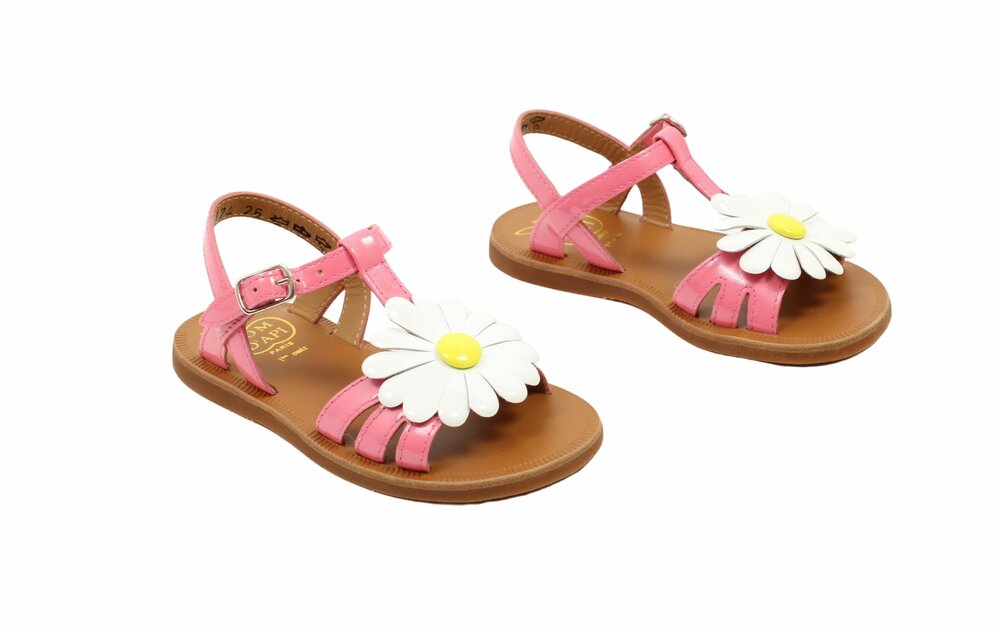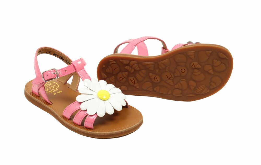 Pom d'Api sandaal, pink bloem (maat 26-36)