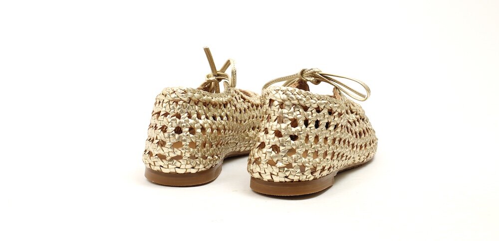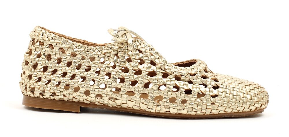 • het bovenwerk van de schoen is gemaakt van natuurlijk plantaardig gelooid leer en met de hand geweven in India, waardoor elk paar uniek is. Kleur en patroon kunnen variëren.