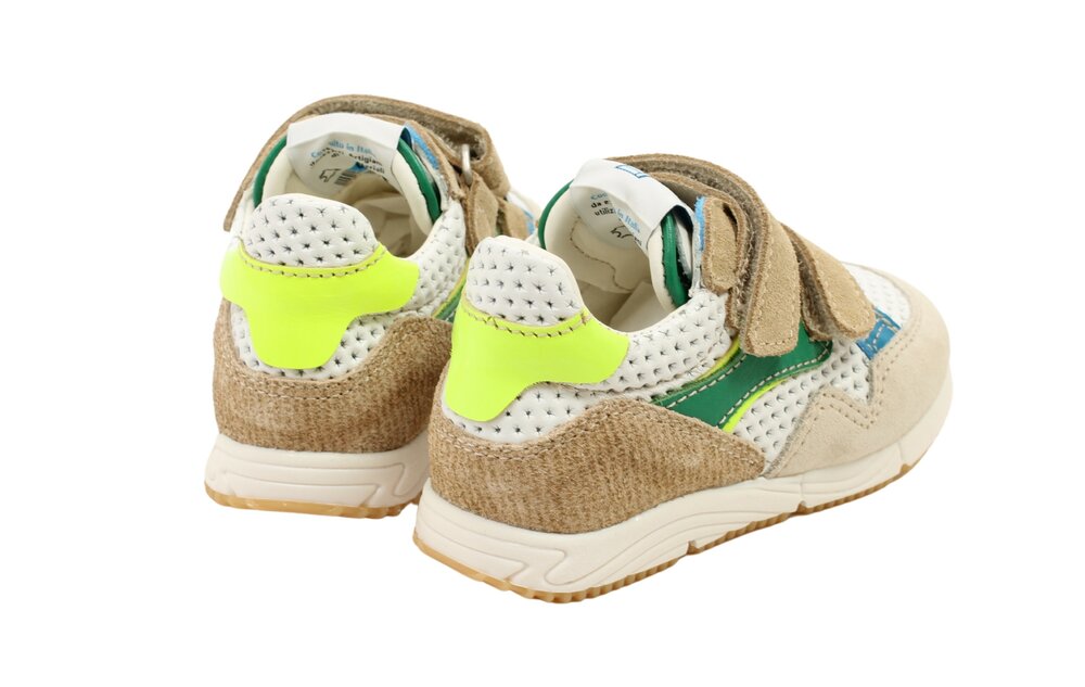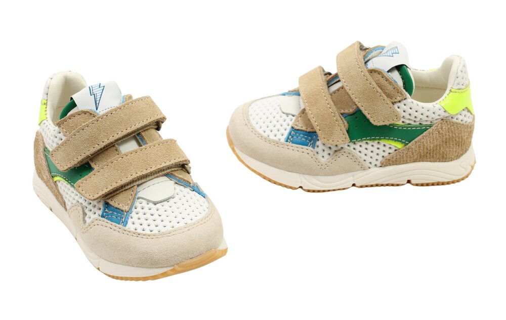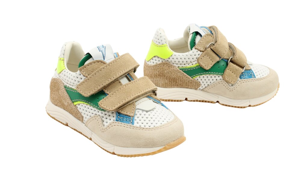 • Kleur: coole combi van wit, groen, fluogeel & blauw