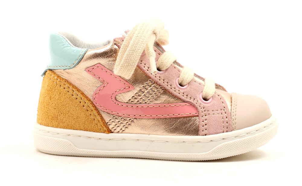 • Kleur: rosé metallic met geel en lichtblauw accent