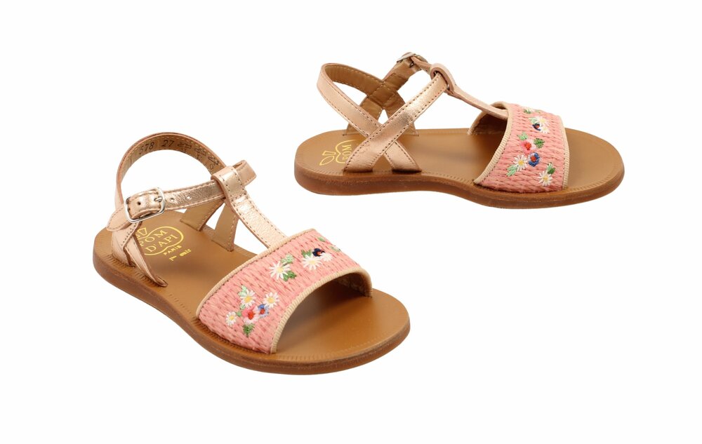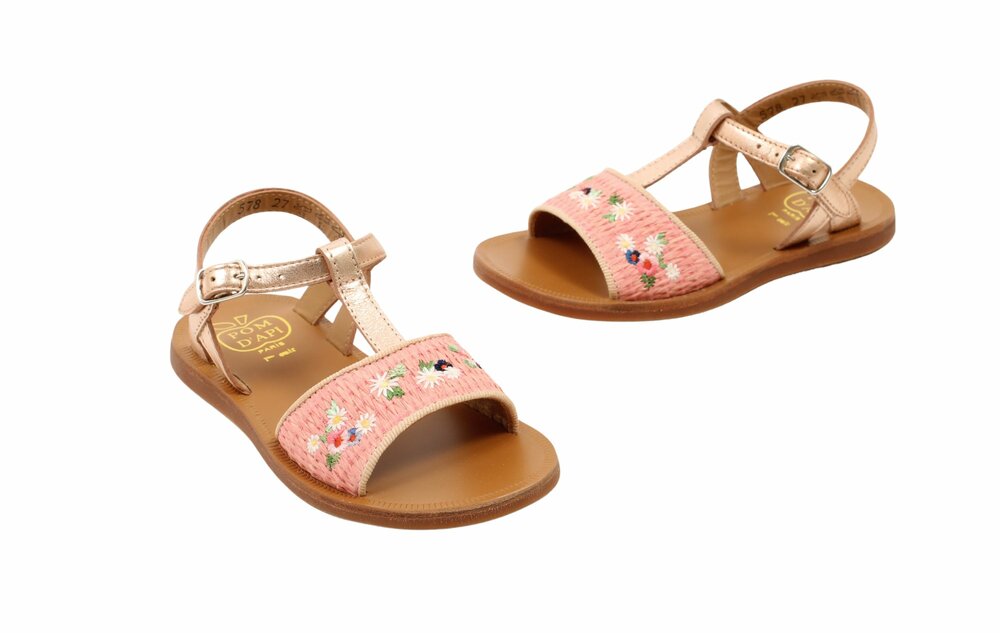 Pom d'Api sandaal, rosé/roze bloemetjes (maat 27-33)